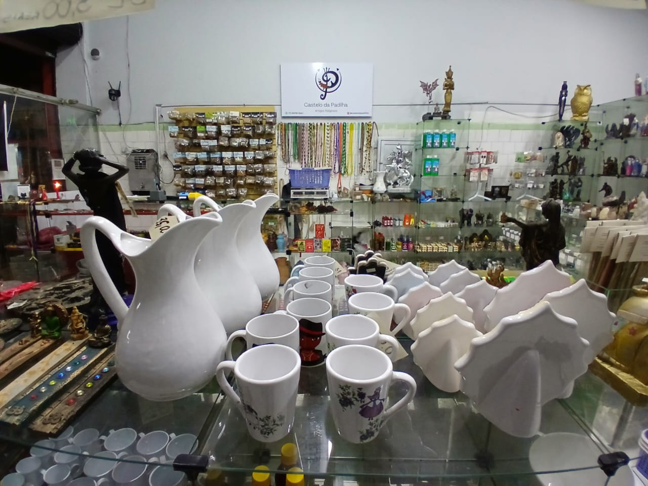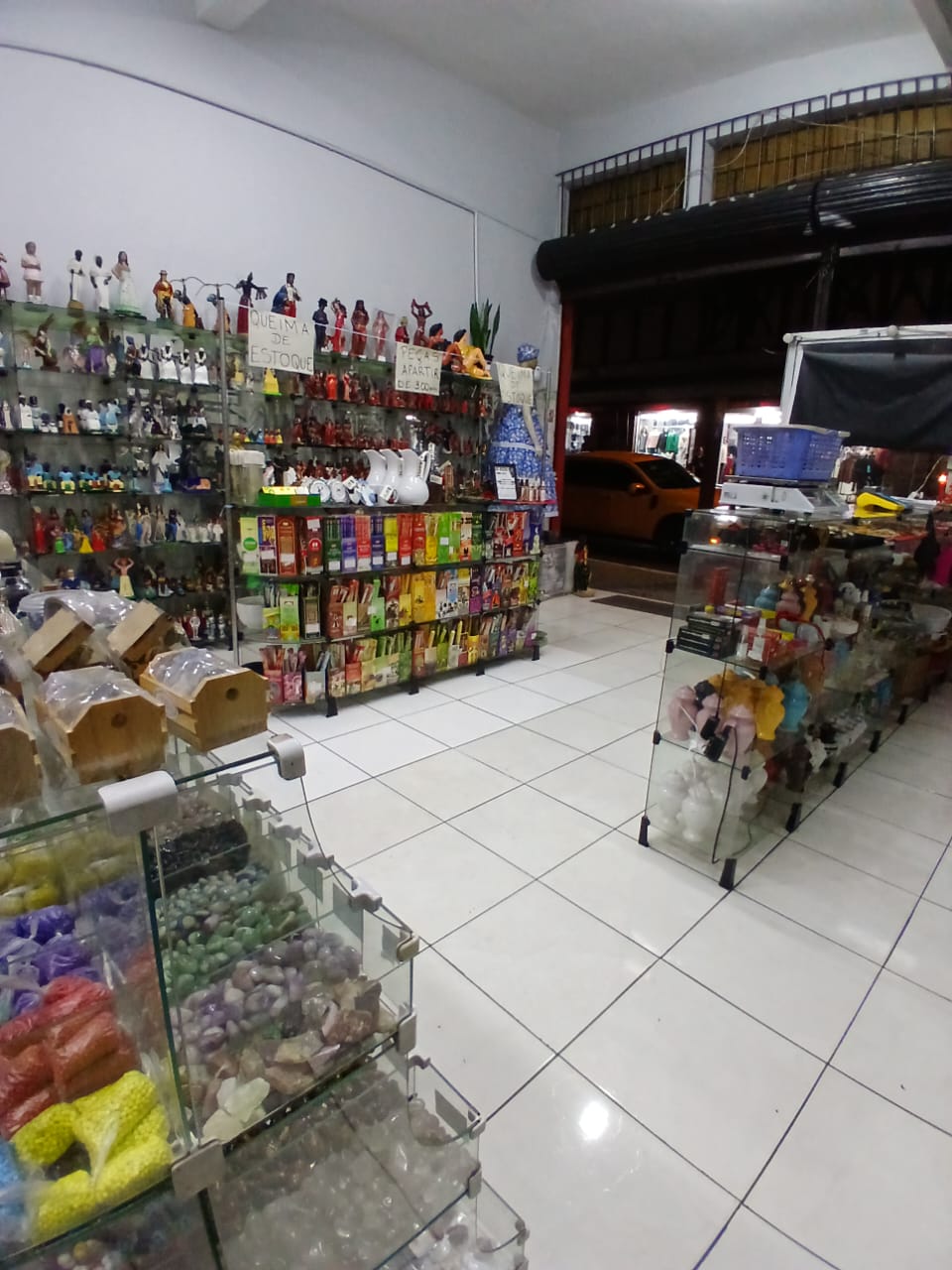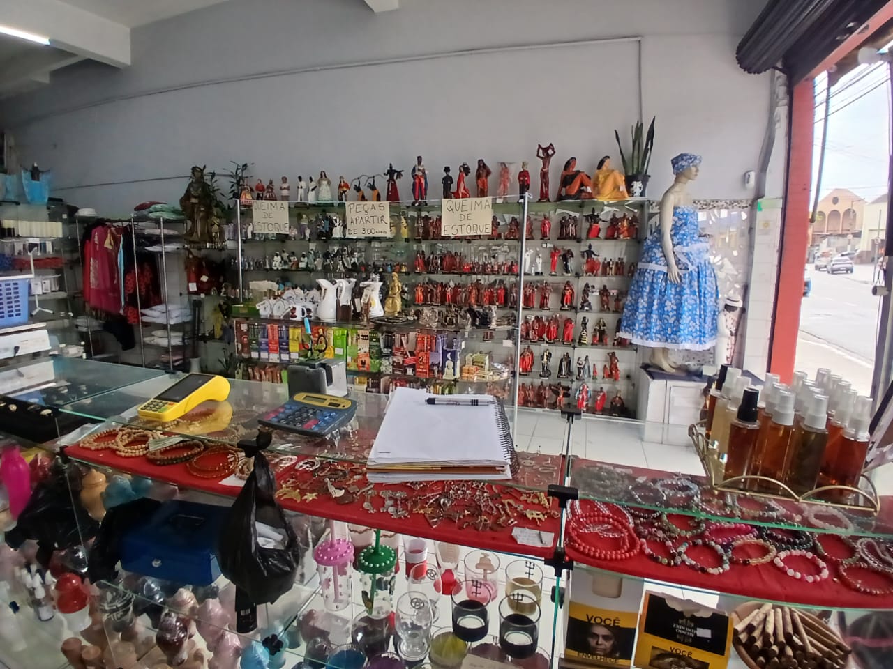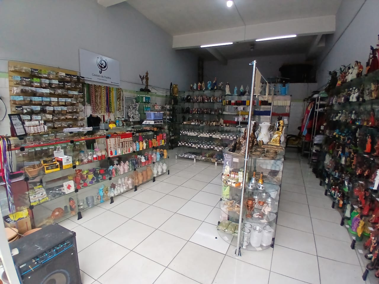 Loja de artigos religiosos completa com prateleiras de vidro, caso queira permanecer no local tratar diretamente com imobiliária, a venda é somente dos itens da loja mais a estrutura dela